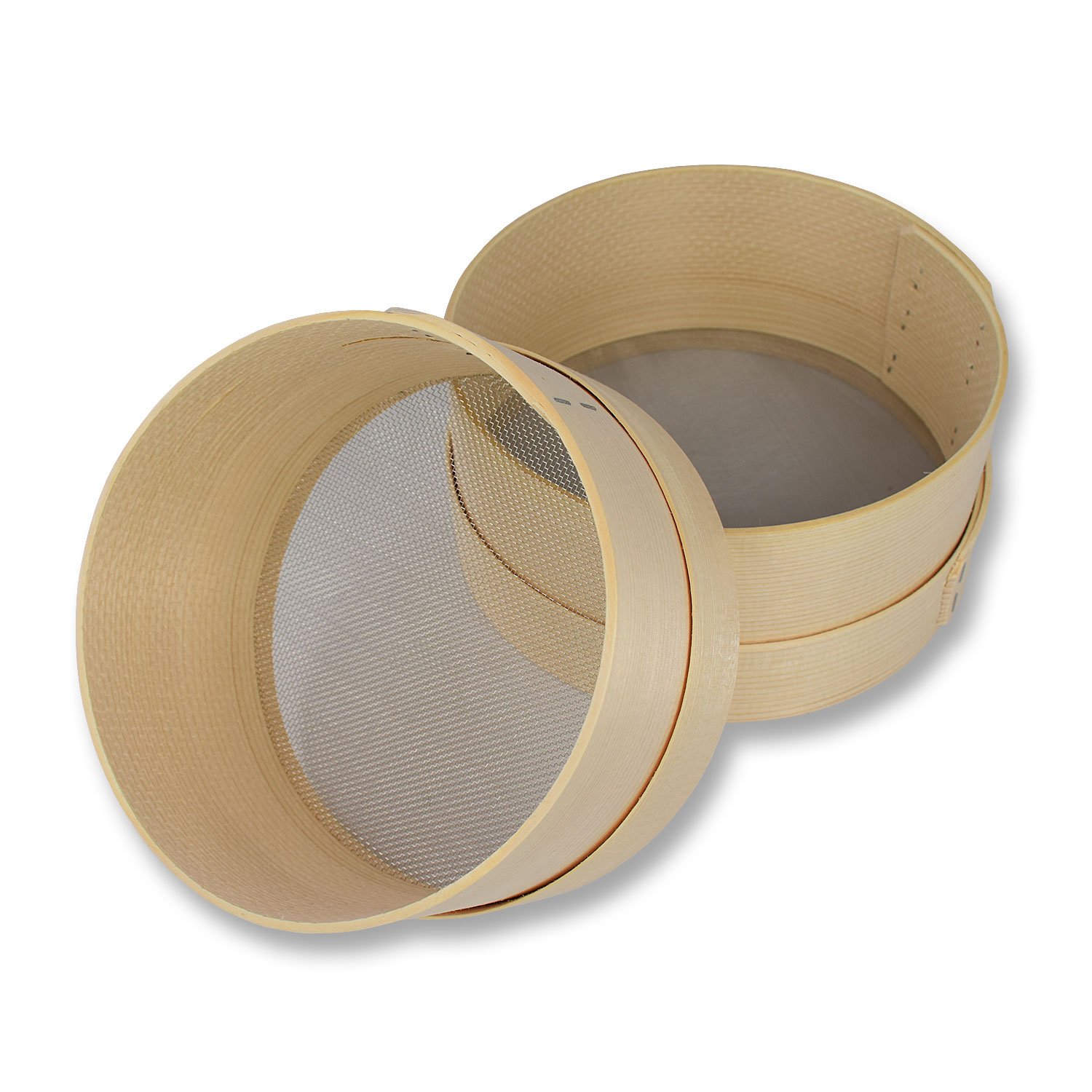 Dieses Set enthält ein Grieß-Sieb mit 1,5 mm Maschenweite und 18 cm Durchmesser sowie ein Mehl-Sieb mit 0,5 mm Maschenweite und 20 cm Durchmesser. Auf diese Weise können beide Siebe Platz sparend ineinander gestellt aufbewahrt werden. Die Sieb-Gitter sind aus Drahtgeflecht.Gewicht: 210 g